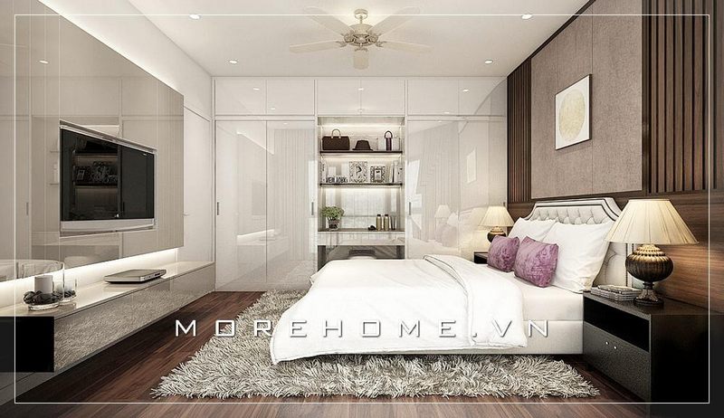 Mẫu thiết kế nội thất phòng ngủ chung cư hiện đại được hoàn thiện bởi Morehome đã thực sự mang đến cho gia chủ một không gian đầy ấn tượng và lý tưởng