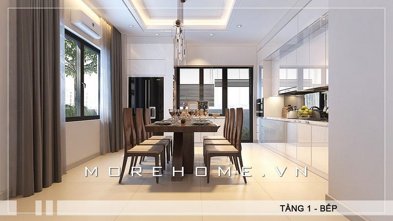 Mẫu thiết kế bàn ăn hiện đại cho phòng ăn chung cư.