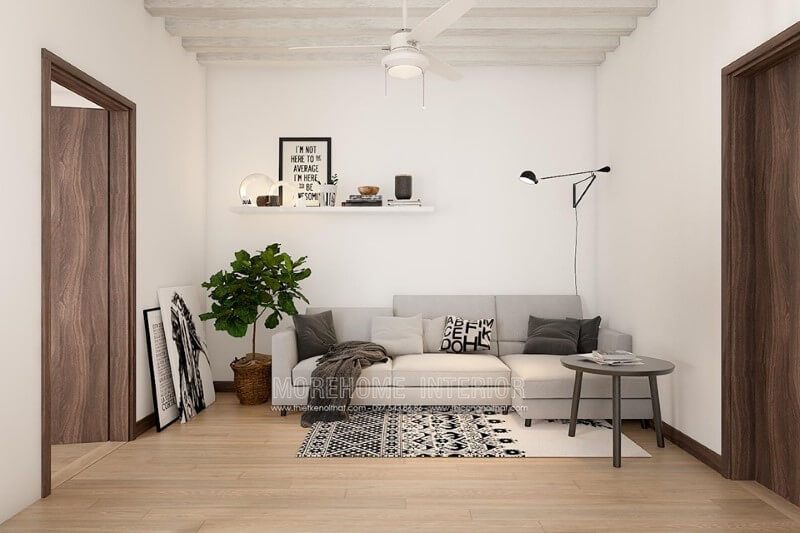 Lựa chọn mẫu sofa góc hiện đại với vỏ bọc vải tiện lợi màu xám tinh tế cho phòng khách căn hộ chung cư thêm thoáng đãng, tiện nghi, ấm cúng.