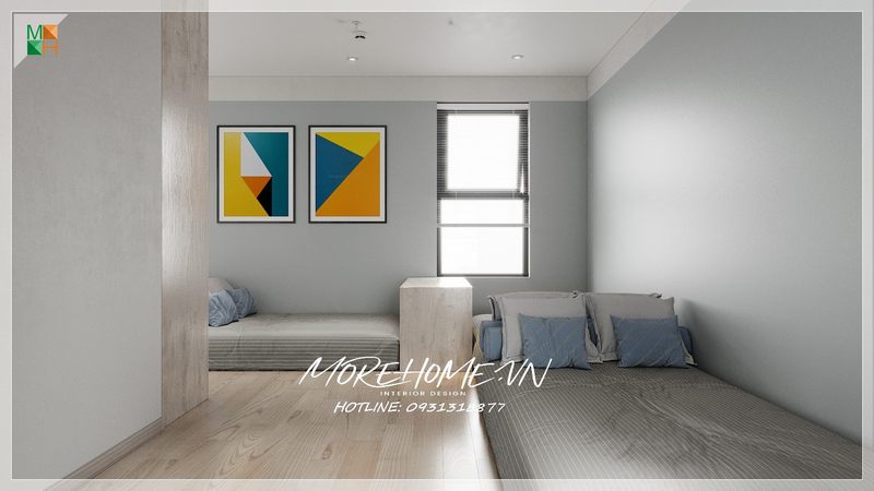 Tô điểm cho không gian phòng ngủ nhân viên với những bức tranh treo tường với nhiều màu sắc sinh động bắt mắt điểm nhấn cho không gian