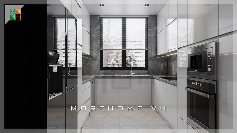 Chiêm ngưỡng mẫu thiết kế phòng bếp chung cư, nhà phố rất sang trọng và tiện nghi, thiết kế bếp có cửa sổ rất thông thoáng và hiện đại