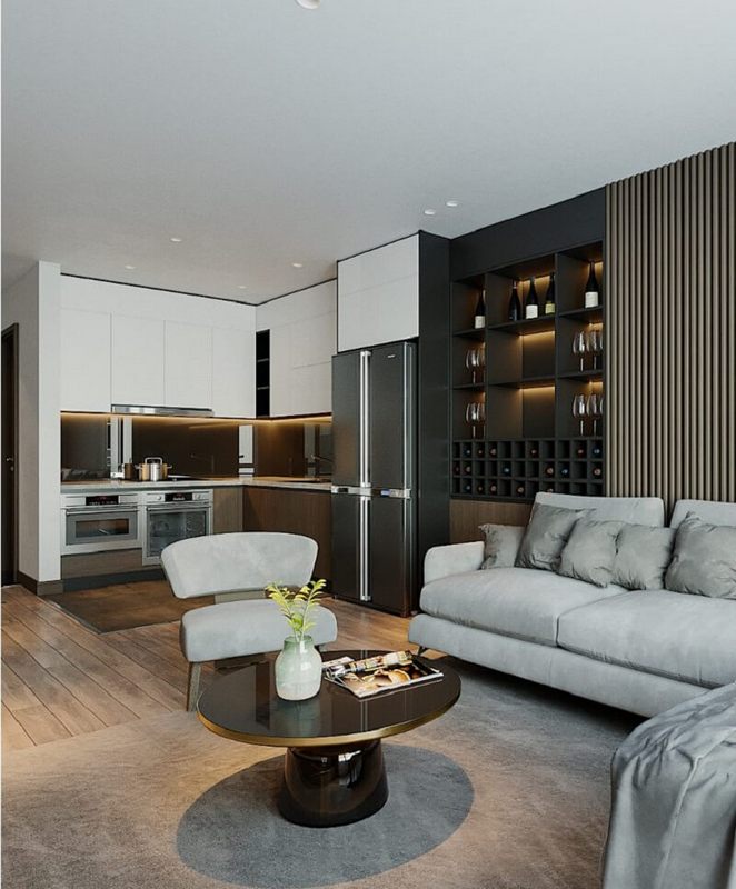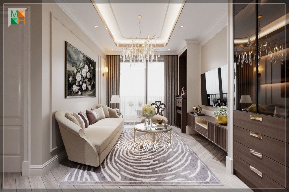 Mẫu bàn trà decor gỗ công nghiệp với kiểu dáng nhỏ nhắn phù hợp với phòng khách chung cư diện tích nhỏ