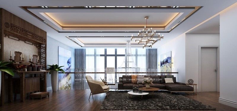 Bàn trà mặt gỗ công nghiệp két hợp với chân sắt, nhẹ nhàng cho phòng khách chung cư