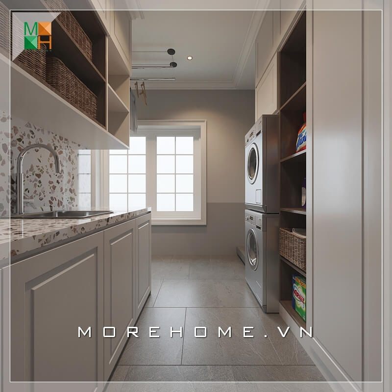 Sự thoáng đãng rộng rãi được giới thiệu bởi không gian sử dụng chủ đạo với tông màu trắng.